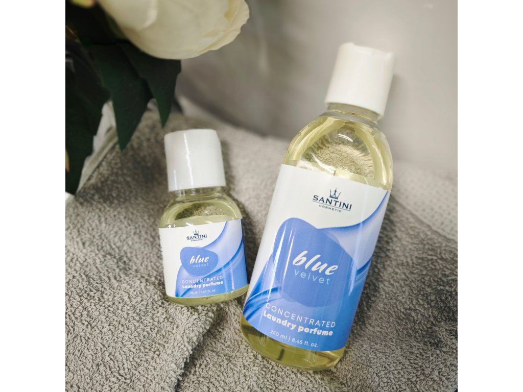 Dopřejte si pocit dokonale svěžího a voňavého prádla. Parfém do prádla Santini – Blue Velvet je koncentrovaný parfém na praní, který promění běžné praní v exkluzivní voňavý zážitek. Tato vůně vás obklopí tajemstvím dřevitých a kořenitých tónů, kde se jasmín a pačuli snoubí s hřejivou vanilkou. Cedr a růžový pepř přinášejí hloubku, zatímco černý rybíz dodává svěží, smyslnou stopu.